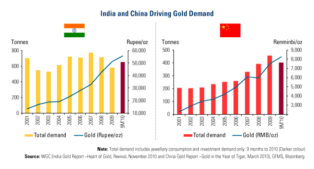 It appears consumers and investors, especially in India, China, Russia and Turkey, are growing accustomed to higher gold prices. At the end of the third quarter, gold demand in India had already exceeded that of 2009 and demand levels in China are ahead of last year's pace.